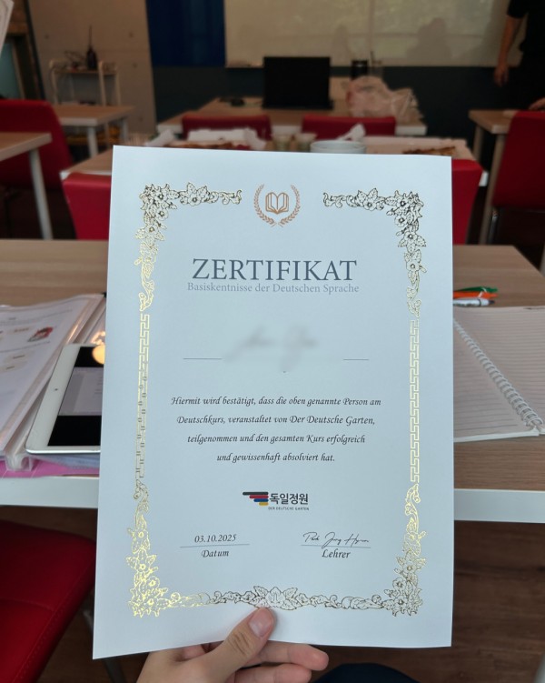 교재랑 작문지도 다 직접 만들어서 사용하시고 수업 내용도 전혀 지루하지 않게, 독일 문화나 지역별 특징, 일화 등 알차게 구성해주셔서 학원 가는 길이 즐겁습니다 ㅎㅎ