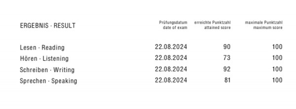 시험은 디지털 시험으로 봤는데, 특히 쓰기와 듣기는 디지털로 시험을 치는 게 확실히 편했습니다. 쓰기 같은 경우에는 그 전에 독일어 자판 연습을 많이 했어서 직접 적는 것보다 빠르게 적을 수 있었고, 듣기는 헤드셋으로 들으니 더 정확하게 들을 수 있었습니다. 시험 신청할 때는 굉장히 빠르게 마감된다는 말을 들었어서 피씨방에 가서 신청을 했습니다. 시험 신청이 쉽지는 않다는 점? 정도가 단점일 것 같습니다.
